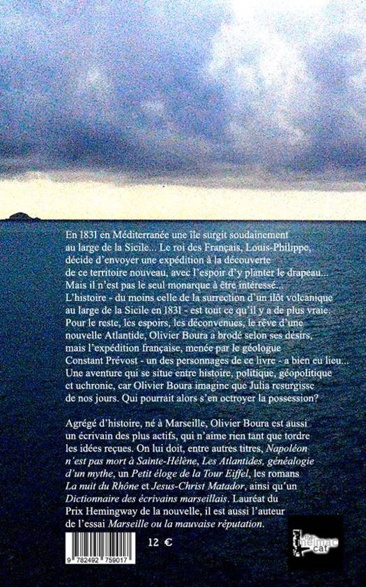 En 1831, des marins naviguant en Méditerranée font une découverte incroyable au large de la Sicile : une île mystérieuse et inconnue ! Est-ce l'Atlantide ? Bientôt, Français, Anglais et Italiens vont se battre pour ce caillou... Un récit incroyable mais pas une fiction. En 1831, un îlot volcanique a bel et bien émergé au large de la Sicile et plusieurs nations ont voulu y planter leur drapeau... avant qu'il ne disparaisse ! L'auteur s'est emparé de ce "fait divers géologique" pour trousser une histoire palpitante et distanciée entre XIXe et XXIe siècle. Que se passerait-il si l'île Julia réapparaissait soudain au large de la Sicile ?