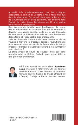 Ce roman plonge le lecteur dans l'histoire de Paris, plus particulièrement celle de la Conciergerie et de la guillotine, qui affleure dans l'esprit de Julie, jeune Parisienne de 17 ans, pleine d'entrain et d'intelligence. Des secrets de famille et le dévoilement d'une vérité cachée, celle de la vie tronqueé de son ancêtre Juliette, vont bouleverser sa vie. Sortira-t-elle indemne de ce voyage dans la tragique période révolutionnaire pour renouer avec sa vie de lycéenne ?