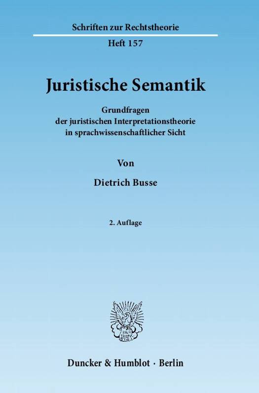 Dass das Recht ohne Sprache und die Arbeit mit und an Sprache nicht gedacht werden kann, zeigt die Fülle sprachtheoretischer (und hier vor allem semantischer) Überlegungen in der juristischen Interpretationstheorie und Methodenlehre. Gesetzesauslegung und -anwendung ist so immer zugleich eine semantische Tätigkeit. Nicht alle der in juristischen Arbeiten diskutierten sprach- und bedeutungstheoretischen Annahmen entsprechen jedoch dem Stand der modernen Sprachwissenschaft. Auch folgt ihre Rezeption anscheinend den vorgegebenen Konfliktlinien juristischer Methodenschulen ("subjektive" oder "objektive" Lehre; Auslegung oder Analogie; Rechtsanwendung oder Rechtsfortbildung; Präzisionsideale der Logischen Semantik oder Freiheiten der Hermeneutik usw.). Nur selten bewirkt die Aufnahme sprachtheoretischer Annahmen eine Infragestellung liebgewordener rechtstheoretischer Grundpositionen selbst. Das Buch soll durch die aus der Sicht eines Sprachwissenschaftlers vorgenommene Bestandsaufnahme, Analyse und Kritik der juristischen Semantik und Sprachtheorie einen Überblick über die Diskussionslage geben und zugleich Auswege aus scheinbaren Dilemmata des juristischen Methodenstreits aufzeigen.