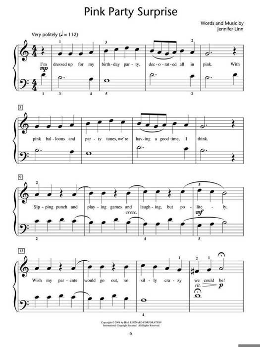 (Educational Piano Library). This collection of nine fun pieces for piano solo will introduce students to some new sounds, rhythms, and keyboard movements. Song titles include: Bubblegum Song * Flamingo * Piglet * Pink Fuzzy Slippers * Pink Lemonade * Pink Party Surprise * Pink Polka Dots * Rosebud * Sunset Glow.