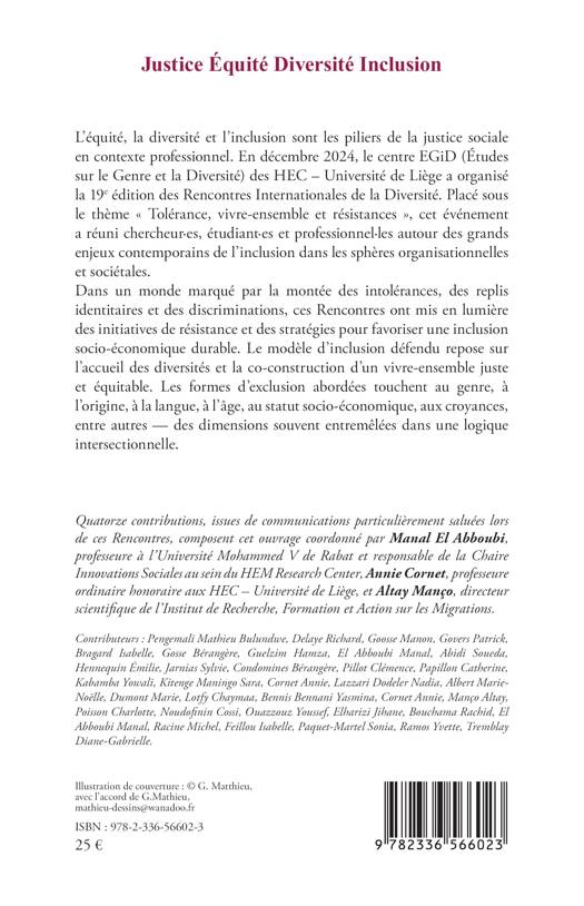 L'équité, la diversité et l'inclusion sont les piliers de la justice sociale en contexte professionnel. En décembre 2024, le centre EGiD (Études sur le Genre et la Diversité) des HEC - Université de Liège a organisé la 19e édition des Rencontres Internationales de la Diversité. Placé sous le thème Tolérance, vivre-ensemble et résistances, cet événement a réuni chercheur-es, étudiant-es et professionnel-les autour des grands enjeux contemporains de l'inclusion dans les sphères organisationnelles et sociétales. Dans un monde marqué par la montée des intolérances, des replis identitaires et des discriminations, ces Rencontres ont mis en lumière des initiatives de résistance et des stratégies pour favoriser une inclusion socio-économique durable. Le modèle d'inclusion défendu repose sur l'accueil des diversités et la co-construction d'un vivre-ensemble juste et équitable. Les formes d'exclusion abordées touchent au genre, à l'origine, à la langue, à l'âge, au statut socio-économique, aux croyances, entre autres - des dimensions souvent entremêlées dans une logique intersectionnelle.
