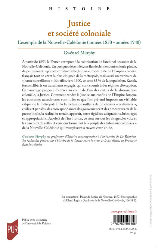 À partir de 1853, la France entreprend la colonisation de l’archipel océanien de la Nouvelle-Calédonie. En quelques décennies, ces îles deviennent une colonie pénale, de peuplement, agricole et industrielle, la plus européanisée de l’Empire colonial français tout en étant la plus éloignée de la métropole, mais aussi un territoire de « haute surveillance ». En effet, vers 1900, ce sont 85 % de la population, Kanak, forçats, libérés ou travailleurs engagés, qui sont soumis à des régimes d’exception. Cet ouvrage propose d’entrer au coeur de l’un des outils de la domination coloniale, la Justice. Comment rendre la Justice aux confins de l’Empire, lorsque les coutumes autochtones sont niées et que l’on prétend imposer un véritable calque de la métropole ? Par la lecture de milliers de procédures « ordinaires », civiles et pénales, des correspondances des gouverneurs et des procureurs ou de la presse locale, la réalité du terrain apparaît, entre rigidités, adaptations, bricolages et appropriations. Au-delà de l’institution, ce sont surtout les visages, les voix et les parcours de celles et ceux qui formèrent le « peuple des tribunaux coloniaux » de la Nouvelle-Calédonie qui resurgissent à travers cette étude.
