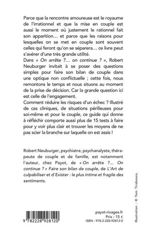 Dans "«On arrête ?... on continue ?"», Robert Neuburger invitait à se poser des questions simples pour faire son bilan de couple dans une optique non conflictuelle ; cette fois, nous remontons le temps et nous situons au moment de la prise de décision. Car la grande question ici est celle de l'engagement.