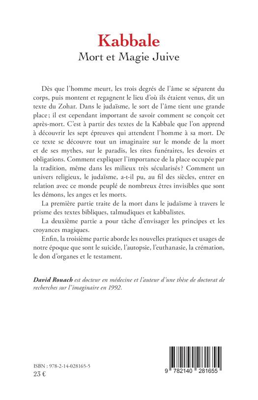 Dès que l'homme meurt, les trois degrés de l'âme se séparent du corps, puis montent et regagnent le lieu d'où ils étaient venus, dit un texte du Zohar. Dans le judaïsme, le sort de l'âme tient une grande place ; il est cependant important de savoir comment se conçoit cet après-mort. C'est à partir des textes de la Kabbale que l'on apprend à découvrir les sept épreuves qui attendent l'homme à sa mort. De ce texte se découvre tout un imaginaire sur le monde de la mort et de ses mythes, sur le paradis, les rites funéraires, les devoirs et obligations. Comment expliquer l'importance de la place occupée par la tradition, même dans les milieux très sécularisés ? Comment un univers religieux, le judaïsme, a-t-il pu, au fil des siècles, entrer en relation avec ce monde peuplé de nombreux êtres invisibles que sont les démons, les anges et les morts ?