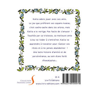 Kalila adore jouer avec ses amis. Le jeu que préfèrent ses copains koalas, c’est cache-cache dans les arbres, mais Kalila a le vertige. Pas facile de s’amuser ! Touchée par sa tristesse, sa meilleure amie Lilou va l’aider à s’entrainer. Kalila va apprendre à travailler pour réaliser ses rêves et à ne jamais abandonner ! Une belle histoire d’amitié et de persévérance, au sein d’une forêt d’eucalyptus…