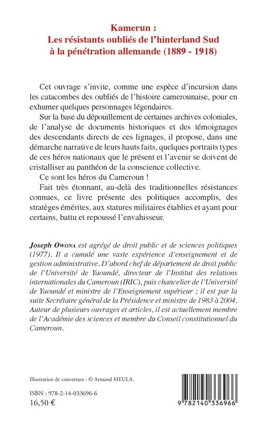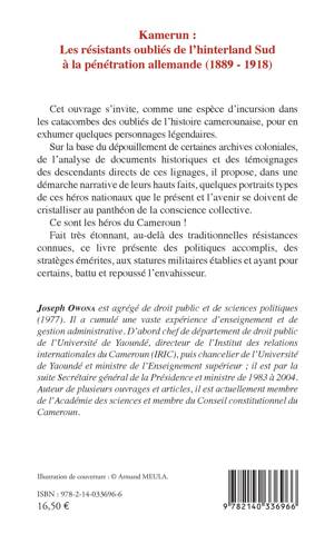 Cet ouvrage s'invite, comme une espèce d'incursion dans les catacombes des oubliés de l'histoire camerounaise, pour en exhumer quelques personnages légendaires. Sur la base du dépouillement de certaines archives coloniales, de l'analyse de documents historiques et des témoignages des descendants directs de ces lignages, il propose, dans une démarche narrative de leurs hauts faits, quelques portraits types de ces héros nationaux que le présent et l'avenir se doivent de cristalliser au panthéon de la conscience collective. Ce sont les héros du Cameroun ! Fait très étonnant, au-delà des traditionnelles résistances connues, ce livre présente des politiques accomplis, des stratèges émérites, aux statures militaires établies et ayant pour certains, battu et repoussé l'envahisseur.