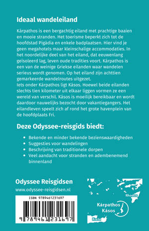 Ideaal wandeleiland Kárpathos is een bergachtig eiland met prachtige baaien en mooie stranden. Het toerisme beperkt zich tot de hoofdstad Pigádia en enkele badplaatsen. Hier vind je geen megahotels maar kleinschalige accommodaties. In het noordelijke deel van het eiland, dat eeuwenlang geïsoleerd lag, leven oude tradities voort. Kárpathos is een van de weinige Griekse eilanden waar wandelen serieus wordt genomen. Op het eiland zijn achttien gemarkeerde wandelroutes uitgezet. Iets onder Kárpathos ligt Kásos. Hoewel beide eilanden slechts tien kilometer uit elkaar liggen vormen ze een wereld van verschil. Kásos is moeilijk bereikbaar en wordt daardoor nauwelijks bezocht door vakantiegangers. Het eilandleven speelt zich af rond het grote havenplein van de hoofdplaats Fri.
