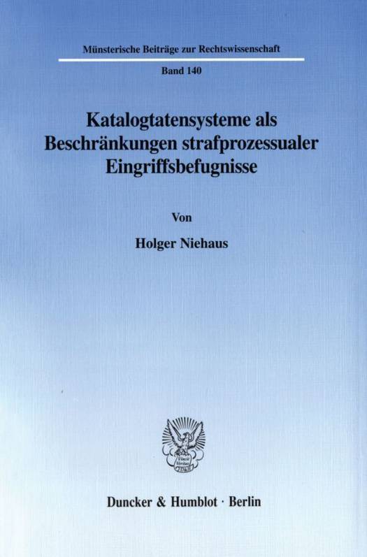 Holger Niehaus gelangt zu dem Ergebnis, dass die geltenden Katalogtatensysteme weder den Anforderungen des Verhältnismäßigkeitsgrundsatzes noch denen der Gesetzesbestimmtheit und der Praxistauglichkeit genügen, so dass ihre Ablösung etwa durch eine Generalklausel geboten erscheint.