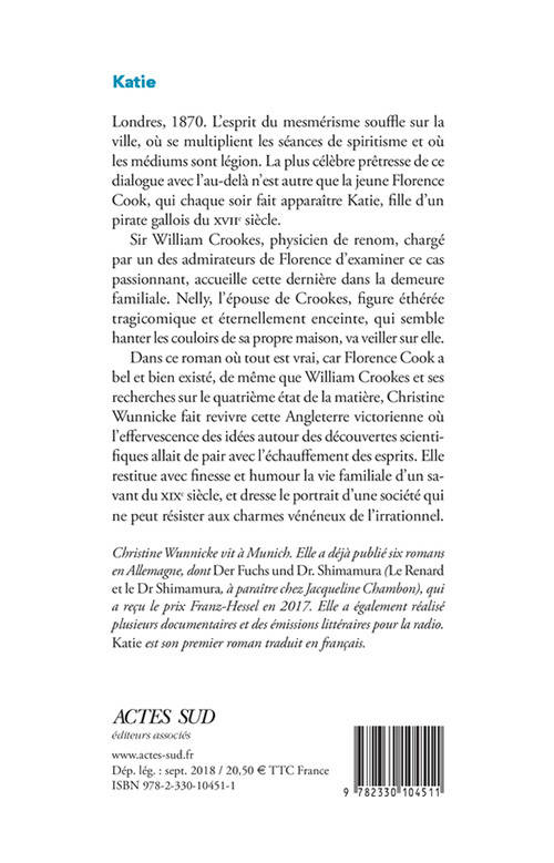 Dans ce roman où tout est vrai, car Florence Cook a bel et bien existé, de même que William Crookes et ses recherches sur le quatrième état de la matière, Christine Wunnicke fait revivre cette Angleterre victorienne où l'effervescence des idées autour des découvertes scientifiques allait de pair avec l'échauffement des esprits. Elle restitue avec finesse et humour la vie familiale d'un savant du xixe siècle, et dresse le portrait d'une société qui ne peut résister aux charmes vénéneux de l'irrationnel.