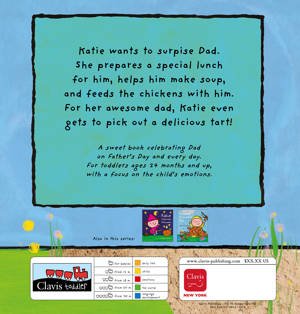 A sweet book celebrating Dad on Father's Day and every day. For toddlers ages 24 months and up, with a focus on the child's emotions. Katie wants to surpise Dad. She prepares a special lunch for him, helps him make soup, and feeds the chickens with him. For her awesome dad, Katie even gets to pick out a delicious tart!