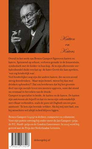 ‘Het zal mijn katterigheid wel zijn, maar ik geloof niet dat ik oud zal worden. Waar leef ik voor? Hetzelfde nutteloze gevoel als toen ik in dienst was, maar veel erger, want nu ben ik alleen. Niemand kan het iets schelen of ik leef of niet leef,’ schreef Remco Campert in 1969. Overal in het werk van Remco Campert figureren katten en katers. Spinnend op schoot, verloren geraakt in de binnentuin, symbolisch met de kolder in hun kop. Al in zijn allereerste verhalenbundel duikt een kat op: de kater Gerrit die kan spreken, ‘wat erg hinderlijk was’. Veel hinderlijker nog zijn die andere katers: die na een avond stevig doordrinken. ‘Omdat ik het vorige avond laat had gemaakt, werd ik donderdag wakker met het gevoel dat ze me maar het beste in een oud karpet konden rollen.’ Campert is specialist in beide, de katten en de katers. De katten zijn autonoom als hijzelf en kat en mens zijn onlosmakelijk met elkaar verbonden, zoals de poes uit Dagboek van een poes aantoont: ‘Ik ben zijn levende wekker. Als hij mij niet had, zou hij misschien wel altijd in bed blijven liggen.’