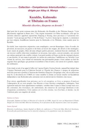 Quel peut être le point commun entre des Kalmouks, des Kazakhs et des Tibétains français ? Leur physionomie rappelant la Haute Asie ? Une origine remontant à la Chine occidentale, celle que les autorités chinoises appellent aujourd'hui Xinjiang et Xizang, deux provinces à l'autonomie très mesurée ? Pour mieux appréhender leur présence sur le sol européen, ce livre se propose d'analyser l'ethnogenèse de ces trois peuples, leur Histoire et leurs histoires compliquées, imbriquées.