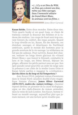 Kazan hésite. Entre deux mondes. Entre deux vies. Trois quarts husky et un quart loup, ce chien de traîneau connaît la douceur des femmes et la rudesse des maîtres. Les coups de fouet sont trop souvent l'envers du confort, des repas assurés. Quand le loup s'éveille en lui, Kazan, fils des Barrens, ces étendues sauvages et désertiques du Northland américain, quitte le monde des hommes pour la grande aventure de la vie sauvage. Le wilderness ne fait pas de cadeaux. Pour survivre, Kazan doit chasser, endurer les longs hivers glaciaux du «Grand Désert Blanc» que transit le blizzard, combattre le lynx et les loups, ses frères féroces, déjouer les pièges, affronter les périls partout sous ses pas. Son âpre paradis serait peut-être un enfer de neige sans la présence à ses côtés de la tendre Louve Grise et Kazan, malgré elle, hésite parfois à regagner la «civilisation». Qui du chien ou du loup en lui l'emportera? Avec Kazan (1914), palpitant roman d'aventures dans le Grand Nord canadien doublé d'une magnifique histoire d'amour, James Oliver Curwood (1878-1927), maître du «nature writing», chasseur repenti devenu un pionnier de la cause écologique, signe un des chefs-d'oeuvre du roman animalier, dans la veine de Jack London. Son Kazan, hymne vibrant au monde sauvage, aujourd'hui plus que jamais menacé, est une lecture qu'on n'oublie pas.