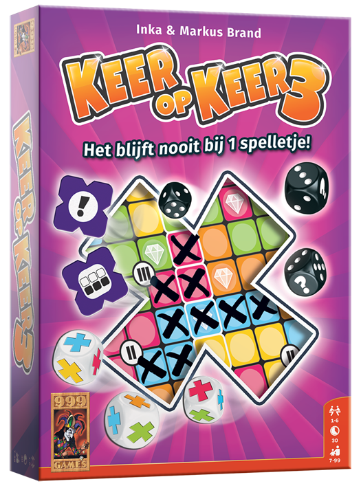 Wie speelt er Keer op Keer 3? Heb jij keer op keer Keer op Keer gespeeld en snak je naar meer? Speel dan Keer op Keer 3: net zo toegankelijk als voorgaande edities, dus net zoveel dobbelplezier. Leuk voor iedereen die van vlotte dobbelspellen houdt!