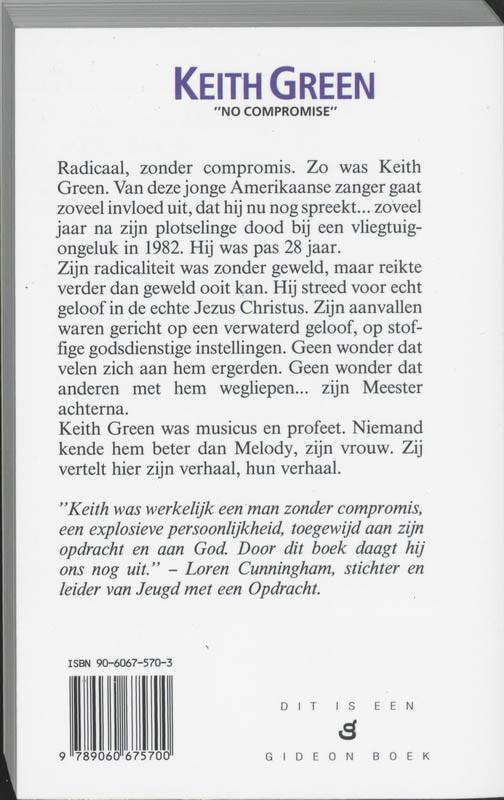 'Keith was werkelijk een man zonder compromis, een explosieve persoonlijkheid, toegewijd aan zijn opdracht en aan God. Door dit boek daagt hij ons nog uit.' - Loren Cunninigham, stichter en leider van Jeugd met een Opdracht.