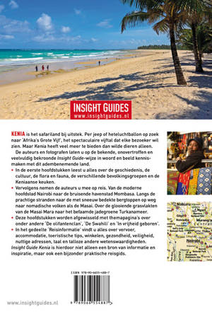 De auteurs en fotografen laten u op de bekende, onovertroffen en veelvuldig bekroonde Insight Guide-wijze in woord en beeld kennismaken met alle andere opmerkelijke bezienswaardigheden, landschappen en culturen. In de eerste hoofdstukken leest u alles over de geschiedenis, cultuur, flora en fauna, de keuken van Kenia, sport en de bevolking. Vervolgens nemen de auteurs u mee op reis. Van de moderne hoofdstad Nairobi naar de bruisende havenstad Mombasa. Langs de prachtige stranden naar de met sneeuw bedekte bergtoppen op weg naar de oude volken als de Masai. Over glooiende grasvlakten van de Masai Mara naar het befaamde jadegroene Turkanameer; alles komt aan bod. Deze hoofdstukken worden afgewisseld met thema- en wetenswaardpagina's over onder andere 'In vrijheid geboren', 'De Swahili', 'De Olifantenclan' en 'Mount Kenya'. De gedetailleerde kaarten en prachtige kleurenfoto's maken deze gids compleet.