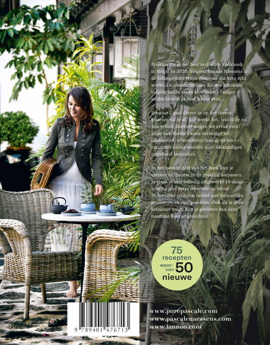 Ketokuur 1 was het best verkochte kookboek in België in 2020. Volgens Pascale Naessens is de belangrijkste reden daarvoor dat keto echt werkt. De meeste mensen die een ketokuur volgen, vallen ervan af - zonder honger - en dat terwijl ze heel lekker eten. Ketokuur 2 gaat dieper in op het thema: waarom val je af, hoe werkt het, wat is de rol van vetten, hoeveel mogen we ervan eten? Maar ook thema's zoals verzadigd vet, cholesterol, intermittent fasting en timerestricted eating worden door deskundigen uitgebreid besproken. In het tweede deel van het boek kun je meteen de theorie in de praktijk toepassen. Je vindt er een volledig uitgewerkt 14-daags schema plus extra recepten: in totaal 75 heerlijke recepten bereid met natuurlijke producten en veel groenten. Ook als je geen ketokuur volgt, kun je genieten van deze heerlijke lowcarbgerechten.