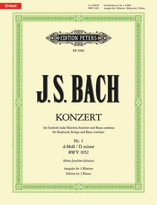 Hans-Joachim Schultze's classic edition of the D Minor Harpsichord Concerto BWV 1052. Edition for 2 keyboards, containing original solo part and secondo keyboard reduction of the orchestral accompaniment (2 copies required for performance).