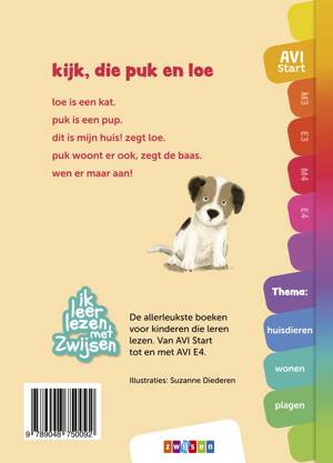Grappig dierenverhaal over kat Loe. Hij heeft een heerlijk leventje totdat er opeens een nieuwe huisgenoot komt: een pup met de naam Puk. Loe laat Puk niet zomaar in zijn leven toe. Voor beginnende lezers op AVI Start.
