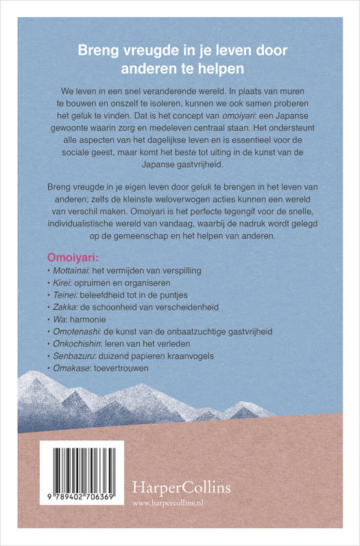 Breng vreugde in je eigen leven door geluk te brengen in het leven van anderen; zelfs de kleinste weloverwogen acties kunnen een wereld van verschil maken. Omoiyari is het perfecte tegengif voor de snelle, individualistische wereld van vandaag, waarbij de nadruk wordt gelegd op de gemeenschap en het helpen van anderen.