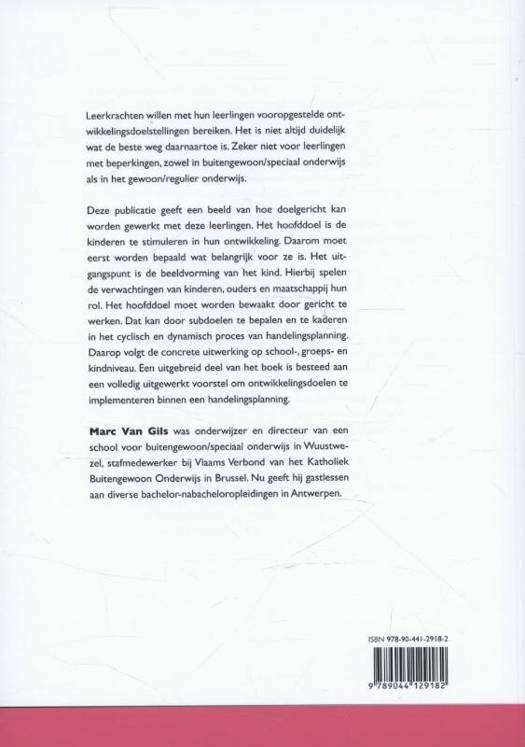 Deze publicatie geeft een beeld van hoe doelgericht kan worden gewerkt met deze leerlingen. Het hoofddoel is de kinderen te stimuleren in hun ontwikkeling. Daarom moet eerst worden bepaald wat belangrijk voor ze is. Het uitgangspunt is de beeldvorming van het kind. Hierbij spelen de verwachtingen van kinderen, ouders en maatschappij hun rol. Het hoofddoel moet worden bewaakt door gericht te werken. Dat kan door subdoelen te bepalen en te kaderen in het cyclisch en dynamisch proces van handelingsplanning. Daarop volgt de concrete uitwerking op school-, groeps- en kindniveau. Een uitgebreid deel van het boek is besteed aan een volledig uitgewerkt voorstel om ontwikkelingsdoelen te implementeren binnen een handelingsplanning.
