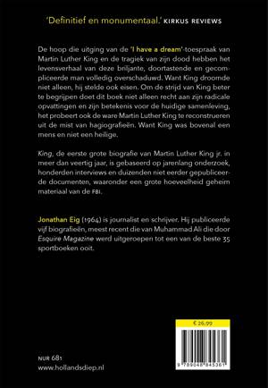 De hoop die uitging van de 'I have a dream'-toespraak van Martin Luther King en de tragiek van zijn dood hebben het levensverhaal van deze briljante, doortastende en gecompliceerde man volledig overschaduwd. Want King droomde niet alleen, hij stelde ook eisen. Om de strijd van King beter te begrijpen doet dit boek niet alleen recht aan zijn radicale opvattingen en zijn betekenis voor de huidige samenleving, het probeert ook de ware Martin Luther King te reconstrueren uit de mist van hagiografieën. Want King was bovenal een mens en niet een heilige.