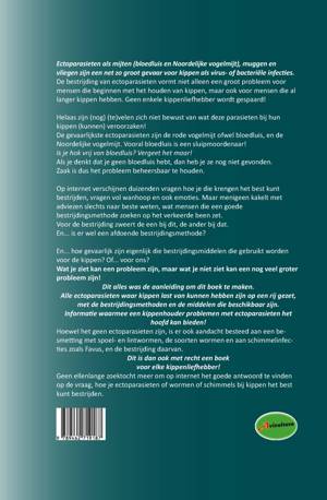 Ectoparasieten als mijten (bloedluis en Noordelijke vogelmijt), muggen en vliegen zijn een net zo groot gevaar voor kippen als virus- of bacteriële infecties. De bestrijding van ectoparasieten vormt niet alleen een groot probleem voor mensen die beginnen met het houden van kippen, maar ook voor mensen die al langer kippen hebben. Geen enkele kippenliefhebber wordt gespaard! Helaas zijn (nog) (te)velen zich niet bewust van wat deze parasieten bij hun kippen (kunnen) veroorzaken! De gevaarlijkste ectoparasieten zijn de rode vogelmijt ofwel bloedluis, en de Noordelijke vogelmijt. Vooral bloedluis is een sluipmoordenaar! Is je hok vrij van bloedluis? Vergeet het maar! Als je denkt dat je geen bloedluis hebt, dan heb je ze nog niet gevonden. Zaak is dus het probleem beheersbaar te houden. Op internet verschijnen duizenden vragen hoe je die krengen het best kunt bestrijden, vragen vol wanhoop en ook emoties. Maar menigeen kakelt met adviezen slechts naar beste weten, wat mensen die een goede bestrijdingsmethode zoeken op het verkeerde been zet. Voor de bestrijding zweert de een bij dit, de ander bij dat. En... is er wel een afdoende bestrijdingsmethode? En... hoe gevaarlijk zijn eigenlijk die bestrijdingsmiddelen die gebruikt worden voor de kippen? Of... voor ons? Wat je ziet kan een probleem zijn, maar wat je níet ziet kan een nog veel groter probleem zijn! Dit alles was de aanleiding om dit boek te maken. Alle ectoparasieten waar kippen last van kunnen hebben zijn op een rij gezet, met de bestrijdingsmethoden en de middelen die beschikbaar zijn. Informatie waarmee een kippenhouder problemen met ectoparasieten het hoofd kan bieden! Hoewel het geen ectoparasieten zijn, is er ook aandacht besteed aan een besmetting met spoel- en lintwormen, de soorten wormen en aan schimmelinfecties zoals Favus, en de bestrijding daarvan. Dit is dan ook met recht een boek voor elke kippenliefhebber! Geen ellenlange zoektocht meer om op internet het goede antwoord te vinden op de vraag, hoe je ectoparasieten of wormen of schimmels bij kippen het best kunt bestrijden.