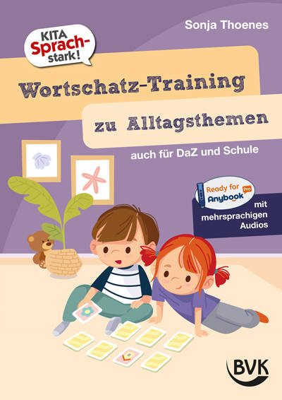 Bei diesem Artikel handelt es sich um die überarbeitete Neuauflage des Heftes Grundwortschatz-Training von Sonja Thoenes (Bestellnr.: KI29).Von Kleidungsstücken über Obst und Gemüse bis hin zu Tieren - ein umfangreicher Wortschatz ist der Grundstein zur Verständigung. Und der lässt sich mit diesem Material spielerisch erlernen und festigen!Zu verschiedenen wichtigen Alltagsthemen bietet Ihnen das Heft Sprachspiele, immer mit liebevoll illustrierten Bildkärtchen und Spielfeldern dazu. So werden Nomen, aber auch optional Verben, Adjektive und Präpositionen trainiert. Beim Ausmalen und Ausschneiden der Bildkärtchen kann zudem die Feinmotorik der Kinder geschult werden.Die Spiele können mit einzelnen Kindern, in Gruppen und mit Ihnen als Fachkraft oder auch zu Hause mit den Eltern durchgeführt werden. Bei der Arbeit zu Hause - insbesondere mit DaZ-Kindern - unterstützen jetzt auch Anybook-Audio-Codes in mehreren Sprachen (Deutsch, Arabisch, Kurdisch, Polnisch, Rumänisch, Russisch, Türkisch, Ukrainisch, Englisch, Französisch, Spanisch).Egal ob Wortschatzentwicklung, Deutsch lernen oder einfach sinnvoller Spielspaß für alle Kinder - so gelingt Sprachförderung ohne Langeweile!