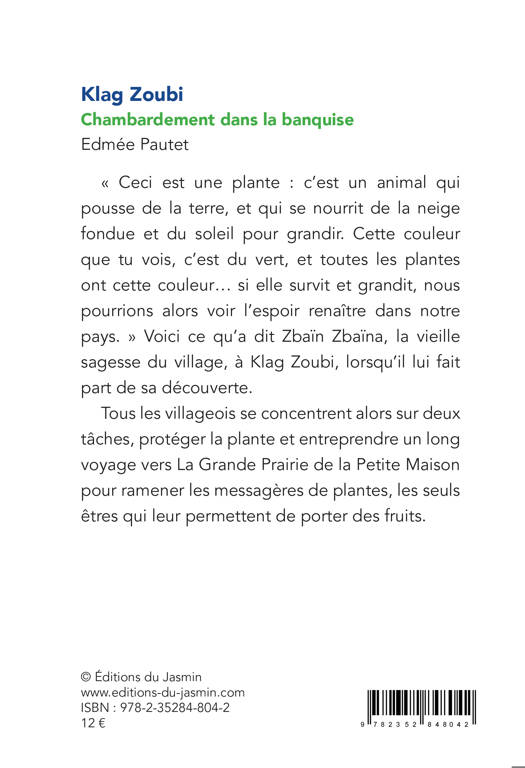 « Ceci est une plante : c’est un animal qui pousse de la terre, et qui se nourrit de la neige fondue et du soleil pour grandir. Cette couleur que tu vois, c’est du vert, et toutes les plantes ont cette couleur… si elle survit et grandit, nous pourrions alors voir l’espoir renaître dans notre pays. » Voici ce qu’a dit Zbaïn Zbaïna, la vieille sagesse du village, à Klag Zoubi, lorsqu’il lui fait part de sa découverte. Tous les villageois se concentrent alors sur deux tâches, protéger la plante et entreprendre un long voyage vers La Grande Prairie de la Petite Maison pour ramener les messagères de plantes, les seuls êtres qui lui permettraient de porter des fruits.