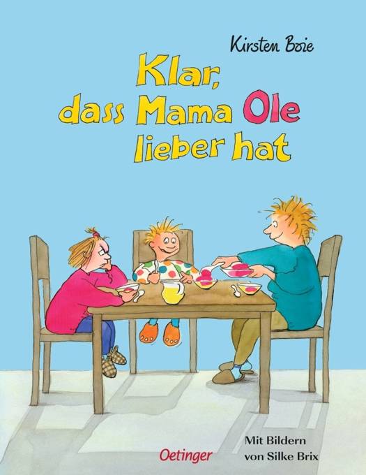 "Klar, dass Mama Anna/Ole lieber hat" von Kirsten Boie beleuchtet humorvoll und einfühlsam die alltäglichen Streitigkeiten und Rivalitäten zwischen Geschwistern aus beiden Perspektiven. Anna, fast sieben Jahre alt und Erstklässlerin, ist genervt von ihrem kleinen Bruder Ole, der noch nicht einmal vier ist und gerade erst in den Kindergarten gekommen ist. Sie empfindet ihn als ständige Quelle der Irritation, sei es durch das Essen ihrer Schokolade aus dem Adventskalender oder sein Drängen, bei ihren Spielen mitmachen zu dürfen, wobei sie glaubt, dass ihre Mutter stets Oles Seite ergreift. Ole hingegen fühlt sich von Anna ausgeschlossen, bekommt nie etwas von ihren Süßigkeiten ab und wird von der Mutter geschimpft, wenn er aus Frustration handgreiflich wird, sodass er überzeugt ist, dass seine Mutter Anna bevorzugt. Trotz dieser Konflikte zeigt Boie, dass Geschwister in Momenten der Angst und Unsicherheit auch Trost und Sicherheit im Beisammensein finden können, etwa wenn in der Dunkelheit "gefährliche Räuber" lauern, was die komplexe und letztlich liebevolle Beziehung zwischen Geschwistern unterstreicht.