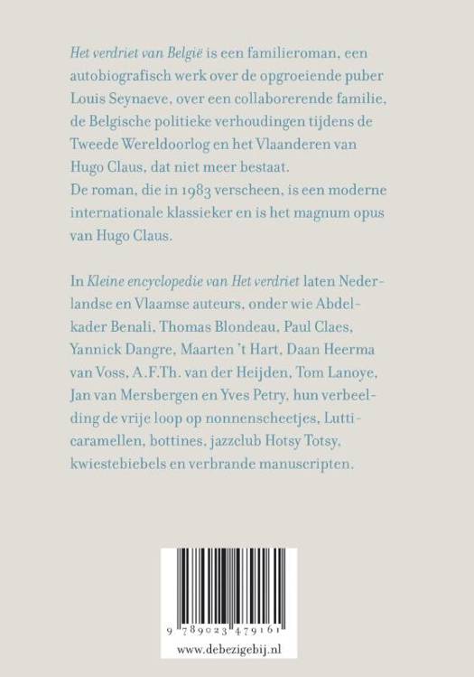 In Kleine encyclopedie van Het verdriet laten Nederlandse en Vlaamse auteurs, onder wie Abdelkader Benali, Thomas Blondeau, Paul Claes, Yannick Dangre, Maarten 't Hart, Daan Heerma van Voss, A.F.Th. van der Heijden, Tom Lanoye, Jan van Mersbergen en Yves Petry, hun verbeelding de vrije loop op nonnescheetjes, Lutti-caramellen, bottines, jazzclub Hotsy Totsy, kwiestebiebels en verbrande manuscripten.