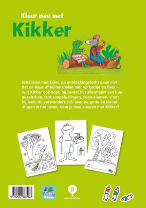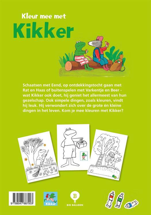 Wat Kikker ook doet, hij geniet het allermeest van het gezelschap van zijn vrienden: Schaatsen met Eend, op ontdekkingstocht gaan met Rat en Haas of buitenspelen met Varkentje en Beer. Ook simpele dingen, zoals kleuren, vindt hij leuk. Hij verwondert zich over de grote én kleine dingen in het leven. Kleur je mee met Kikker?