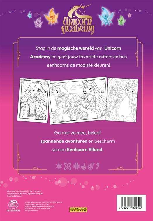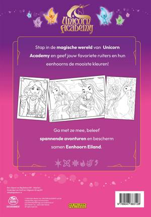 In het 'De wereld van Unicorn Academy kleurboek' geef je jouw favoriete ruiters en eenhoorns kleur! Dit kleurboek is voor kinderen van 6 jaar en zit boordevol met kleurplaten van Sophia, Wildstar, Layla, Glacier en alle andere meiden en paarden op Eenhoorn Eiland. Pak je kleurpotloden of stiften en verheug je op een lekkere creatieve middag thuis.