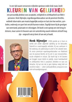In een tijd waarin verworven vrijheden opnieuw onder druk staan, biedt Kleuren van gelijkheid een persoonlijk pleidooi voor acceptatie, veiligheid en zichtbaarheid van lhbti+ personen. Henk Nijmeijer, regenboogambassadeur van de provincie Drenthe, verbindt observaties aan maatschappelijke analyse en laat zien hoe wetten, symbolen, onderwijs en sport het verschil kunnen maken. Tegelijk toont hij de gevolgen van weerstand, polarisatie en stilzwijgen. Dit boek is een oproep om niet terug te deinzen, maar samen te bouwen aan een samenleving waarin iedereen zichzelf mag zijn - ongeacht wie je bent of van wie je houdt.