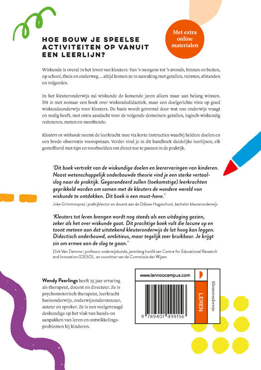 'Kleuters tot leren brengen wordt nog steeds als een uitdaging gezien, zeker als het over wiskunde gaat. Dit prachtige boek vult die lacune op en toont meteen aan dat uitstekend kleuteronderwijs de lat hoog kan leggen. Didactisch onderbouwd, ambitieus, maar tegelijk zeer bruikbaar. Je krijgt zin om ermee aan de slag te gaan.'