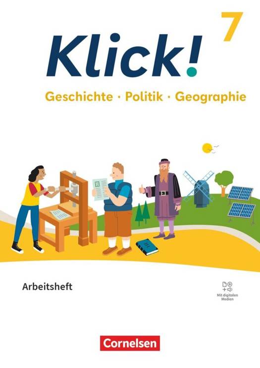 Neu bei Klick! ist der hybride Ansatz. Dabei wird das gedruckte Arbeitsheft durch optionale digitale Angebote angereichert, auf die die Lernenden ganz einfach über die Cornelsen Lernen App oder das E-Book zugreifen. Dazu gehören Erklärvideos, Audios, interaktive Übungen zur eigenständigen Überprüfung des Lernfortschritts (Teste dich!) sowie abwechslungsreiche, motivierende Quizzes.