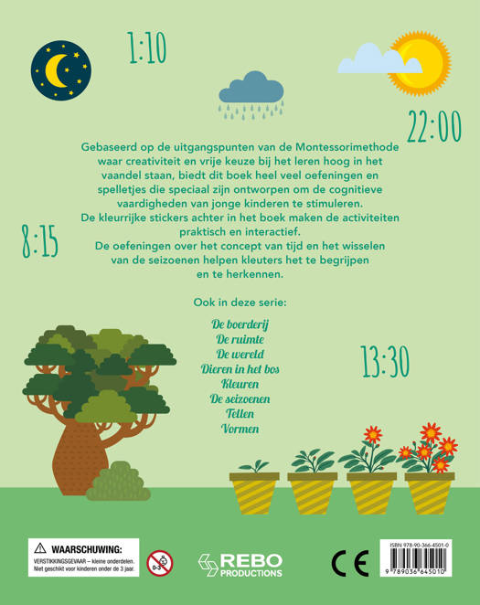 Gebaseerd op de uitgangspunten van de Montessorimethode waar creativiteit en vrije keuze bij het leren hoog in het vaandel staan, biedt dit boek heel veel oefeningen en spelletjes die speciaal zijn ontworpen om de cognitieve vaardigheden van jonge kinderen te stimuleren. De kleurrijke stickers achter in het boek maken de activiteiten praktisch en interactief.
