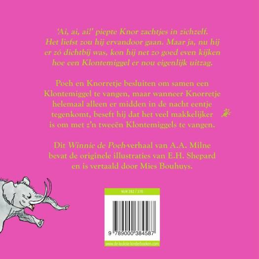 Deze prachtige gebonden uitgave bevat een hartverwarmend Winnie de Poeh-verhaal van A.A. Milne. In Knorretje komt een Klontemiggel tegen bedenken Poeh en Knorretje samen hoe ze een Klontemiggel kunnen vangen. Een geweldige gelegenheid om een nieuwe generatie te laten kennismaken met de personages uit het Honderd-Bunders-Bos. Gecombineerd met de iconische illustraties van E.H. Shepard zijn deze verhalen de perfecte introductie in de wereld van Winnie de Poeh voor kinderen van 5 jaar en ouder.