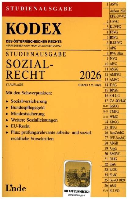 KODEX Studienausgabe Sozialrecht 2026 17. Auflage, Stand 1.2.2026 Mit der App zum Gesetz