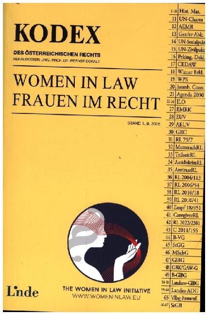 KODEX Women in Law / Frauen im Recht1. Auflage, Stand 1.9.2025Der KODEX "Women in Law / Frauen im Recht" vereint - erstmalig in Österreich - alle maßgeblichen historischen und aktuellen Rechtsquellen in einem Band, die für die Entwicklung der Rechte der Frau relevant waren und sind. Von der Französischen Revolution über die Erklärung der Menschenrechte bis hin zu europäischen und österreichischen Rechtsquellen werden die wesentlichen Dokumente zusammengefasst und geben so ein geordnetes Bild über die Entwicklung dieser Normen über einen Zeitraum von fast 250 Jahren. Internationale Quellen werden - soweit möglich - in der Originalsprache samt Übersetzung wiedergegeben.Der KODEX richtet sich gleichermaßen an Studierende wie an Praktiker:innen und dient als essentielle Referenz für Studium, Recherche und Lehre.