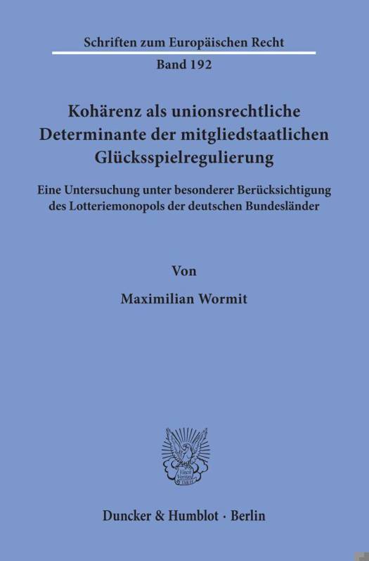 Seit einigen Jahren leitet der Europaische Gerichtshof eine Reihe von Vorgaben aus den unionsrechtlichen Grundfreiheiten fur die mitgliedstaatliche Glucksspielregulierung ab. Im Zentrum dieser Vorgaben steht die Forderung nach einem koharenten, also moglichst stimmigen und widerspruchsfreien Regulierungskonzept. Gerade in jungerer Zeit hat das Postulat der Koharenz betrachtliche Entwicklungsschube empfangen. Dies nimmt die Arbeit zum Anlass, die Funktion, Struktur und Wirkkraft des Koharenzgebots im Glucksspielkontext zu untersuchen. Daruber hinaus will die Bearbeitung aufzeigen, wie sich das Koharenzgebot im konkreten Prufungsablauf einsetzen lasst, und bewertet unter Zugrundelegung der zuvor herausgearbeiteten Koharenzmaastabe das seit jeher zum eisernen Bestand der deutschen Glucksspielpolitik zahlende Monopol der Lander auf die Veranstaltung bestimmter Lotterien.