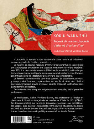 La poesie du Yamato a pour semence le coeur humain et s'epanouit en une myriade de feuilles, les mots. Le Recueil de poemes japonais d'hier et d'aujourd'hui est la premiere des anthologies de poemes en japonais compilee sur ordre imperial, vers 905. Il a marque de maniere definitive la sensibilite nationale par l'attention extreme qu'il porte au deroulement des saisons et de l'amour. Son influence sur la litterature posterieure est considerable. Le Recueil rassemble mille cent onze poemes, de plus de cent auteurs, y compris des femmes, representant un siecle et demi de creation poetique. C'est une oeuvre originale, dont le propos et la structure sont parfaitement concertes. Cette traduction integrale, soigneusement annotee, est la premiere en francais.
