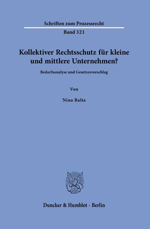 Kleine und mittlere Unternehmen (KMU) sind größeren Unternehmen in gerichtlichen Auseinandersetzungen regelmäßig unterlegen. Das liegt insbesondere an begrenzten finanziellen Ressourcen, geringerer Prozesserfahrung sowie einer häufig einseitigen wirtschaftlichen Abhängigkeit von den konfliktbefangenen Geschäftsbeziehungen. Nicht selten sehen KMU daher von einer gerichtlichen Durchsetzung ihrer Ansprüche ab - auch in Fällen, in denen zahlreiche KMU gleichartig betroffen sind. Das wirft die Frage auf, ob der bislang weitgehend auf den Verbraucherschutz beschränkte kollektive Rechtsschutz um Instrumente für KMU erweitert werden sollte. Die Arbeit geht dieser Fragestellung sowohl aus Sicht der betroffenen KMU als auch unter Berücksichtigung des öffentlichen Interesses an effektiver Rechtsdurchsetzung und Missbrauchsprävention nach. Auf dieser Grundlage wird ein auf KMU zugeschnittener Regelungsvorschlag entwickelt.