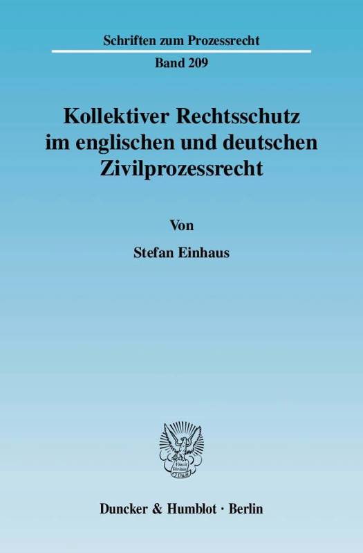 Der kollektive Rechtsschutz bildet einen Schwerpunkt des zivilprozessualen Schrifttums der letzten Jahre. Das englische Recht ist dabei von besonderem Interesse - nicht nur als Ursprung bekannter kollektiver Rechtsschutzformen in den USA, sondern auch wegen der schon seit den achtziger Jahren im Vereinigten Königreich gewachsenen Erfahrung mit zivilprozessualen Massenverfahren. Stefan Einhaus stellt die kollektiven Rechtsschutzinstrumente des englischen und deutschen Zivilprozesses umfassend rechtsvergleichend dar. Ausgehend von der Frage nach Wesen und Zweck des zivilprozessualen Rechtschutzes zeigt der Autor Formen und Ziele kollektiven Rechtsschutzes auf und ordnet diese in das rechtsstaatliche Gesamtsystem ein.