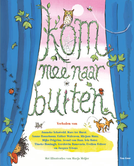 Na het succes van Weet je wat ik worden wil… verschijnt er opnieuw een verhalenbundel in het thema van de Kinderboekenweek. Verhalen over buitenspelen, natuur, dieren, planten en het klimaat vormen de groene draad. Zo schreef Tineke Honingh over vogelkijken, vertelt Arend van Dam over een Nederlandse schilderes die was gespecialiseerd in stillevens met bloemen en schreef Esther Walraven een verhaal over een duikvakantie en een gewonde zeeschildpad. Speciaal voor deze bundel schreef Gershwin Bonevacia bovendien een aantal prachtige gedichten en maakte Iris Boter een geestig stripverhaal. Al deze verhalen en nog veel meer vind je in Kom mee naar buiten. Een bundel vol leesplezier met illustraties van Marja Meijer.