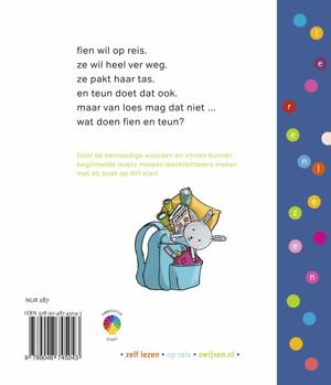 fien wil op reis. ze wil heel ver weg. ze pakt haar tas. en teun wil mee. maar dat mag niet … wat doen fien en teun?