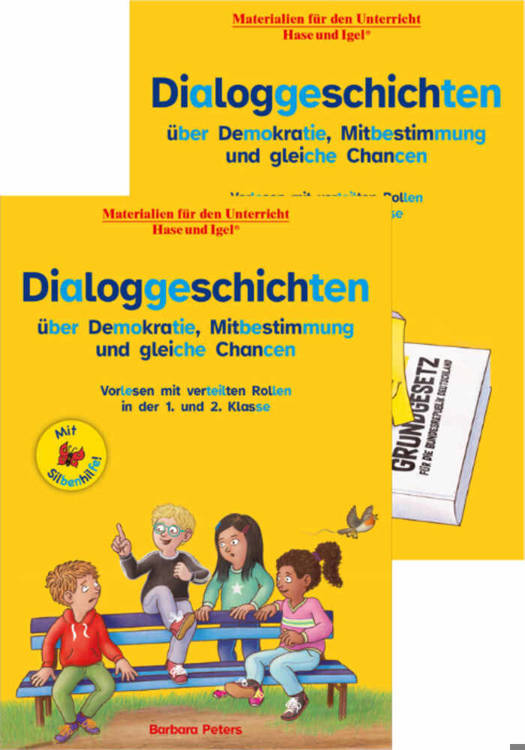 Beide Mappen mit Dialoggeschichten über Demokratie, Mitbestimmung und gleiche Chancen (mit Silbenhilfe) im Paket. Ideal für anschauliche und kindgerechte Einheiten zur Demokratiebildung - innerhalb der "Verfassungsviertelstunde" oder im Rahmen anderer Unterrichtsformate. Jede Mappe mit 32 Seiten, Format DIN A4, farbig illustriert.