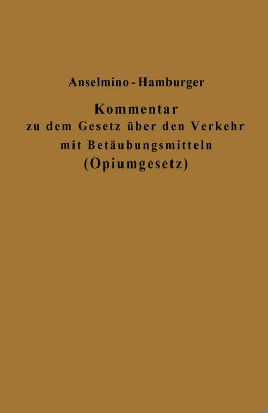 Kommentar Zu Dem Gesetz Über Den Verkehr Mit Betäubungsmitteln (Opiumgesetz) Und Seinen Ausführungsbestimmungen