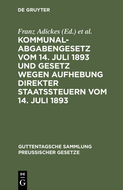Keine ausführliche Beschreibung für "Kommunalabgabengesetz vom 14. Juli 1893 und Gesetz wegen Aufhebung direkter Staatssteuern vom 14. Juli 1893" verfügbar.