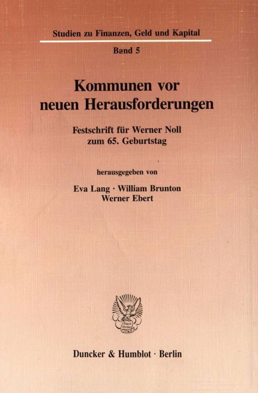 Am 4. August 1996 vollendete Professor Dr. Werner Noll, Ordinarius an der Universität Würzburg, sein 65. Lebensjahr. Freunde, Schüler und Kollegen widmen aus diesem Anlaß dem Jubilar diese Festschrift. Seine Lehr- und Forschungstätigkeit sowie seine Aktivitäten in verschiedenen Gremien hatten stets einen kommunalwissenschaftlichen Bezug. Deshalb wurde aus seinem Arbeitsspektrum als Thema der Festschrift der Schwerpunkt »Kommunen vor neuen Herausforderungen« ausgewählt. In ihrer Gesamtheit spiegeln die Beiträge zur Festschrift das Bemühen wider, dem besonderen Anliegen des Jubilars zu folgen, theoretische und praktische Aspekte der Finanzwissenschaft zu verknüpfen.Der vorliegende Sammelband ist mit dem Ziel konzipiert, für den Bereich der Kommunen sowohl strategische Problemfelder aufzugreifen und politikfähige Antworten durch die Finanzwissenschaft zu geben, als auch den wissenschaftlichen Erkenntnisfortschritt durch die Kommunikation mit theoretisch geschulten Praktikern voranzutreiben.Neben der grundlegenden Neuorientierung der Kommunalverwaltung (Neues Steuerungsmodell) stehen aktuelle Fragen im Vordergrund, so die Rolle der Kommunen im föderativen Staat (einschließlich der europäischen Ebene), Probleme der Gemeindefinanzen sowie Aspekte der kommunalen Praxis. Die Beiträge dokumentieren, daß es nennenswerte Entwicklungen auf dem Feld der kommunalen Finanzwissenschaft gibt, die sowohl die Kluft zwischen Theorie und Praxis entschärfen als auch anschlußfähig für andere Disziplinen, insbesondere die Verwaltungswissenschaft, die Betriebswirtschaft, die Politologie und die Soziologie erscheinen.